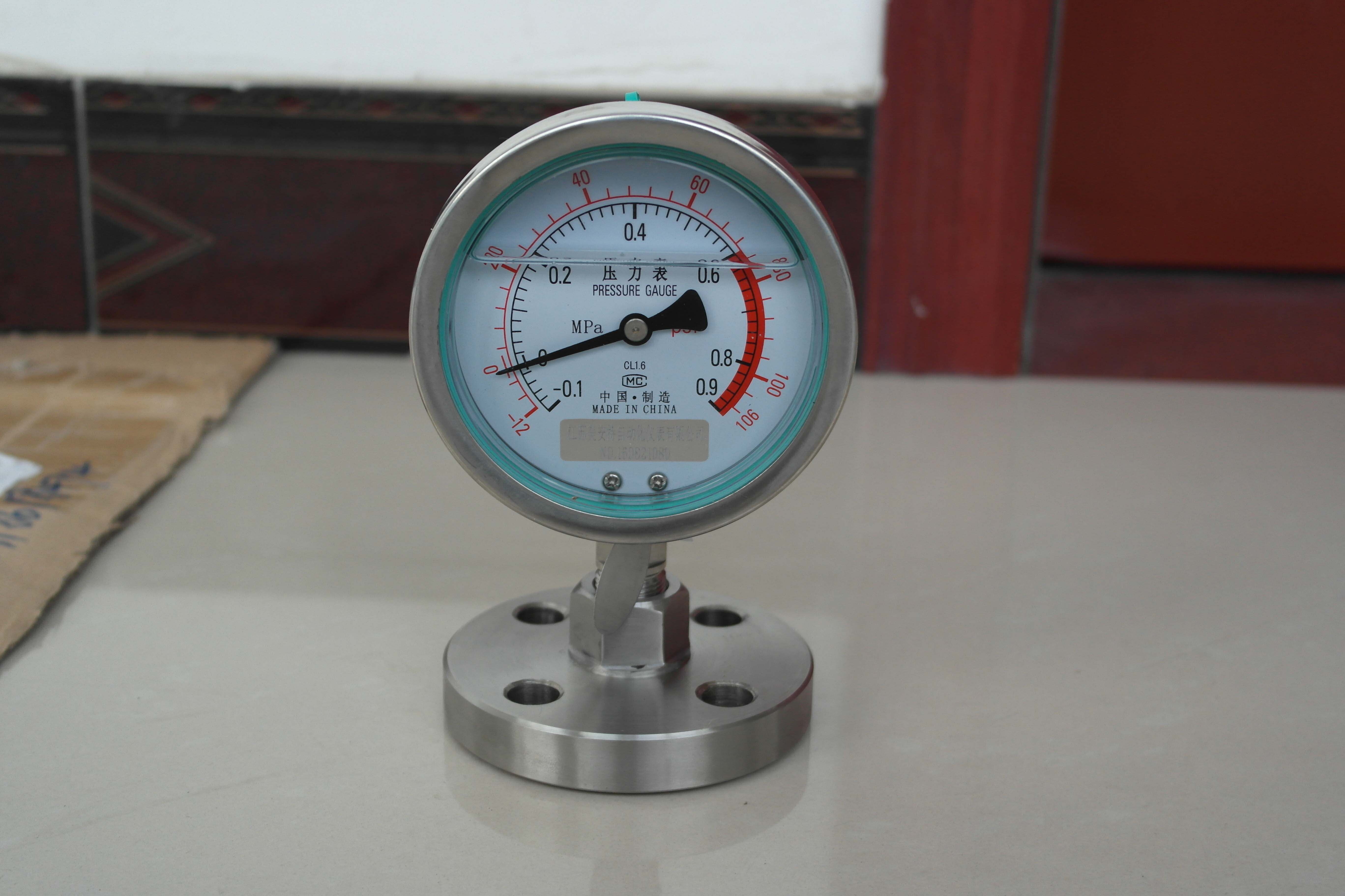 隔膜耐震压力表用于测量强腐蚀、高温、高粘度、易结晶、易凝固、有固体浮游物的介质压力以及必须避免测量介质直接进入通用型压力仪表和防止沉淀物积聚且易清洗的场合,应必须采用由隔膜隔离器与通用型压力仪表组成一个系统的隔膜表。