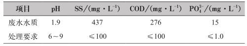 含酸废水的水含量大约在2400t/d。含酸废水水质自身的参数以及在当地的地方污水综合的排放标准当中的处理指标详情如下表1 所示。